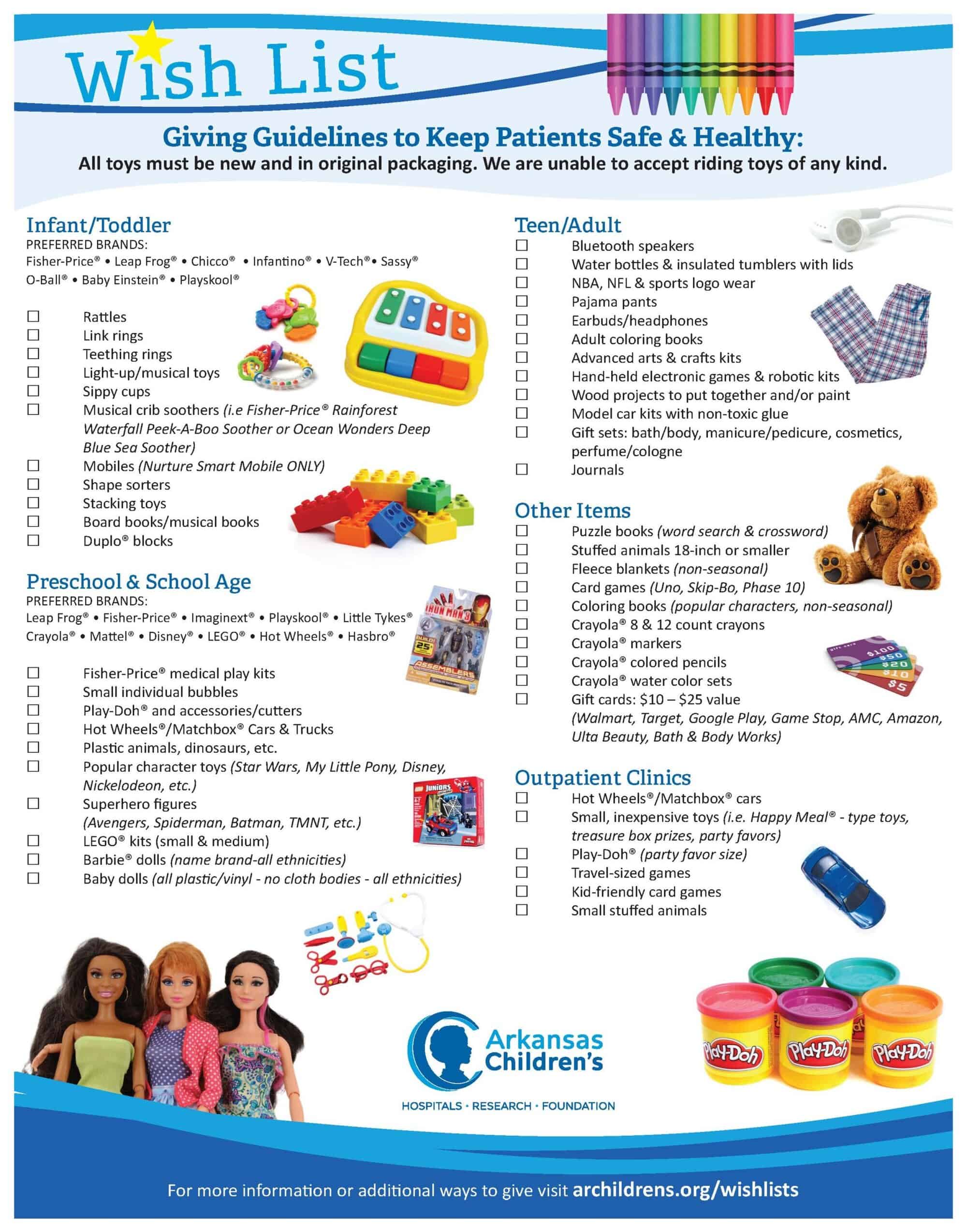 We are collecting toys and other approved items from the official list provided by the hospital.
